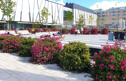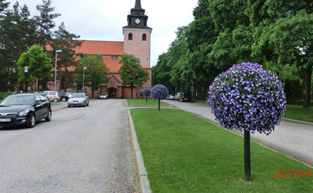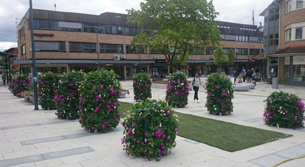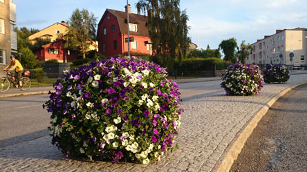 Ovanstående arrangemang med surfinia i Järfälla centrum
