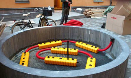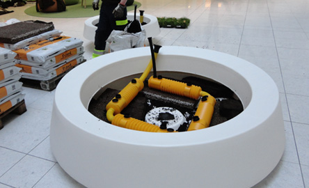 bevattningssystem på terrassbjälklag i Liljeholmen, Stockholm.
