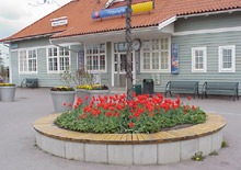 till Sigtuna välkomnades besökare av denna härligt röda |