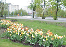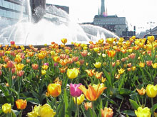Hamngatan/Sveavägen lyste tulpanerna upp och |