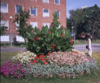 Här en blomsterrundel uppbyggd | |