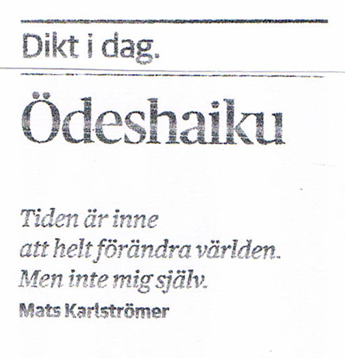 Pressklipp haiku ur Dagens Nyheter 2021-03-25